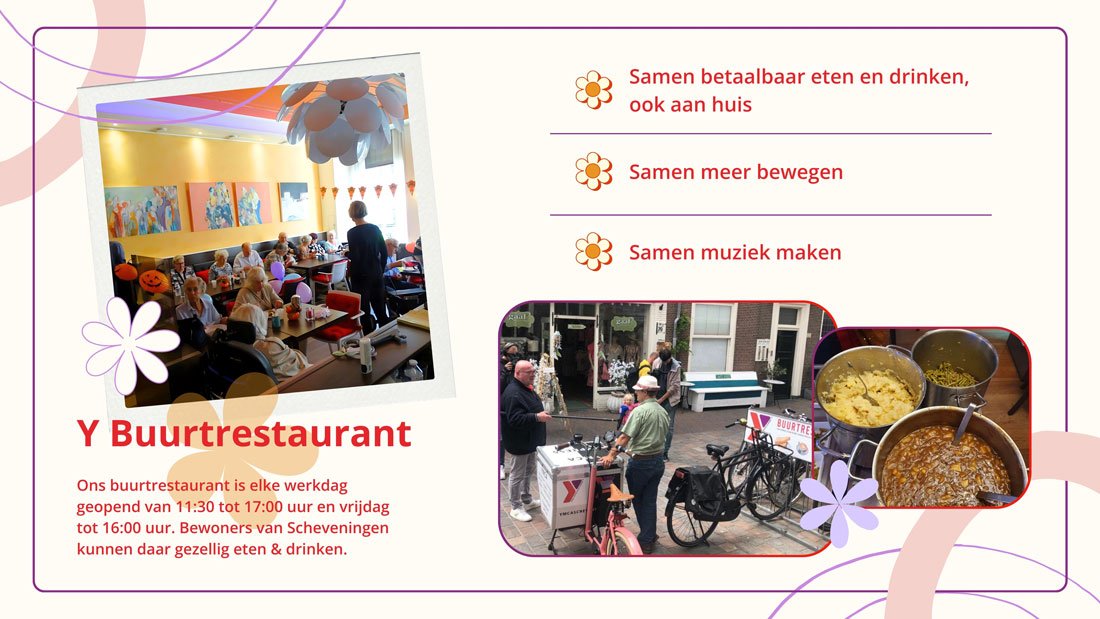 YMCA Scheveningen heeft formeel namens de gemeente Den Haag de status van 'Buurthuis van de Toekomst'. Daarnaast vind YMCA Scheveningen samenwerking met partijen belangrijk om bottom up te kunnen functioneren als muziekcentrum en sociale aanbieder voor het stadsdeel Scheveningen e.o.